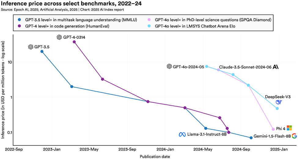 Content Production: While human oversight remains essential, the cost to leverage AI for content creation has improved dramatically, with inference prices for LLMs decreasing by 200-fold for some models (Epoch AI). This cost reduction enables teams to produce higher volumes of personalized content that directly improves engagement rates and lead quality.
